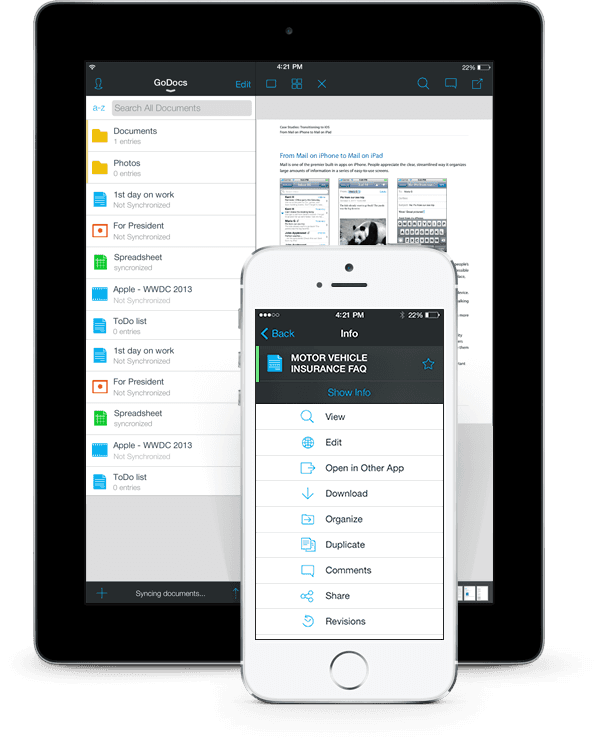 With GoDocs, you can make a convenient structure for your documents, moving files into folders.