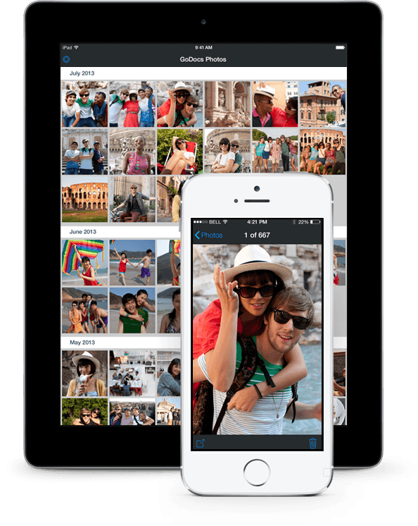 Beautiful and robust viewing is one of the core experiences of GoDocs Photos. All your photos, from all folders, are placed on a smart grid and grouped by the date they were taken.